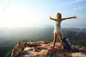 1 Stood on top of a very high mountain or cliff, looking down at countryside, or out to sea?