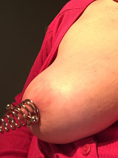 Master presented his girl with a present at the weekend. Something to help to stretch her pierced nipples. It would be true to say that both Master and slave are interested in stretching her nipples for His pleasure.