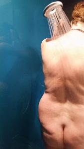 A bathroom shot from Eroticon weekend. Lots of pale skin on view. For me it feels as if there is a need for toning of areas I don’t usually get to see. This though is Master’s view and he says he likes it.