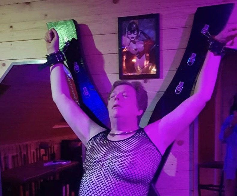 Imagine you are that woman secured to the St Andrew’s cross. The leather cuffs are each lined with soft fabric, and these encase your wrists and ankles. You are attached to the cross by hooks that have been clipped onto the cuffs at each point. Your nipples have been clamped, as has your clitoris. The three are joined by a chain that jangles across your tummy. You have a butt plug in your arse and a dildo inserted into your cunt.